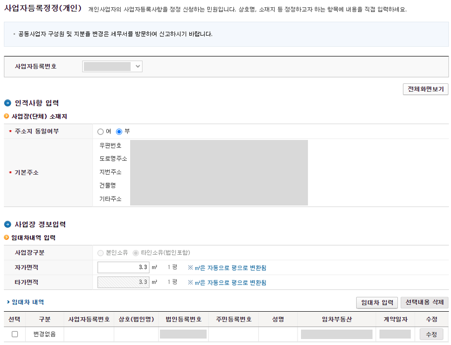 사업장 소재지 주소 변경하는 방법